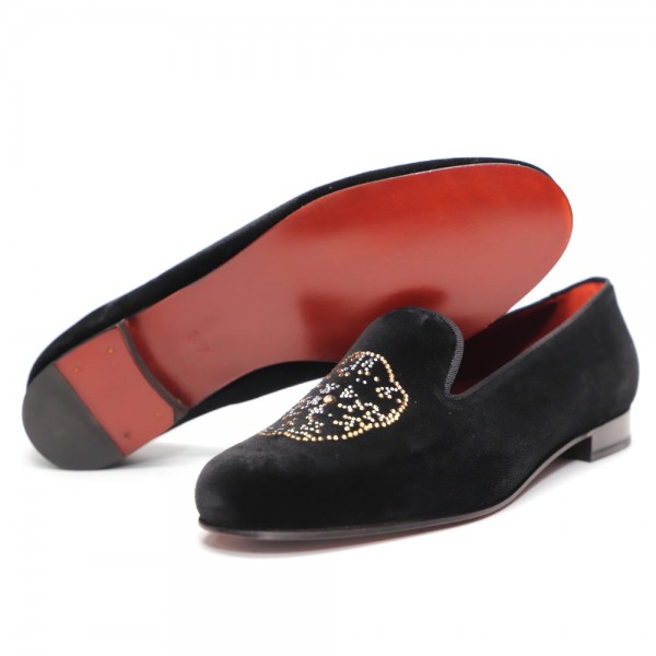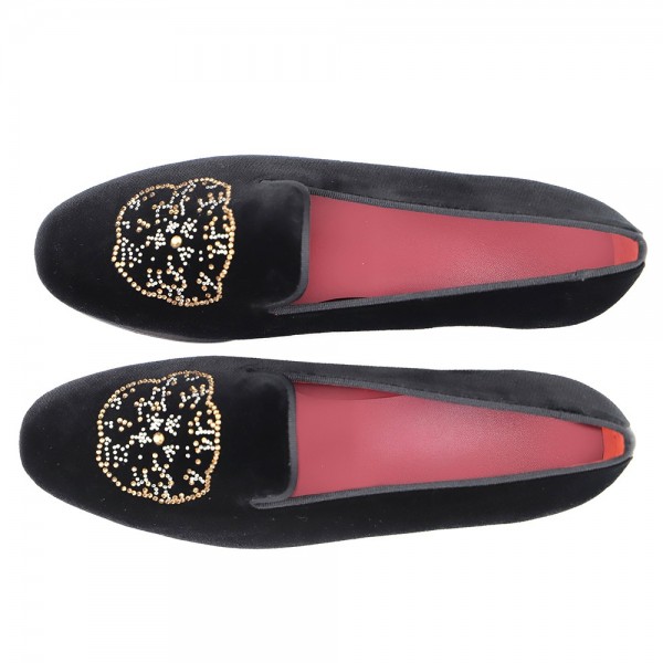 BLACK VELVET, PEONIE TRANSFER ORNAMENT, GROSGRAIN TRIM, LEATHER LINING, LEATHER SOLE, 14MM HEEL, DUST BAG, SHOE-HORN AND BOX, MADE IN SPAIN