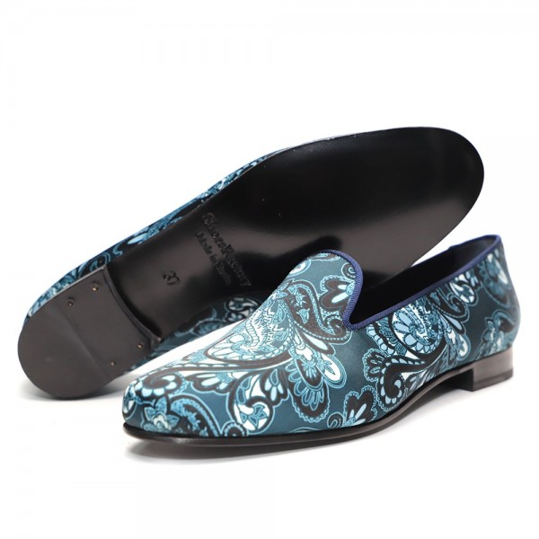 BLUE AMOEBA, GROSGRAIN TRIM, LEATHER LINING, LEATHER SOLE, 14MM HEEL, DUST BAG, SHOE-HORN AND BOX, MADE IN SPAIN