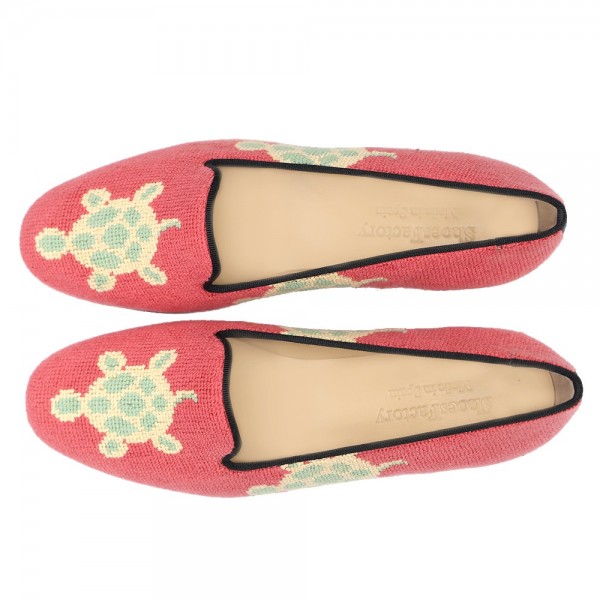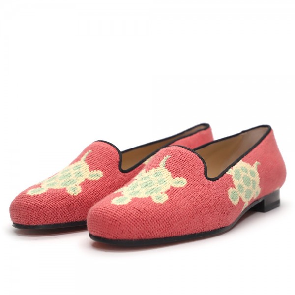TURTLE NEEDLEPOINT, GROSGRAIN TRIM, LEATHER LINING, LEATHER SOLE, 14MM HEEL, DUST BAG, SHOE-HORN AND BOX, MADE IN SPAIN
