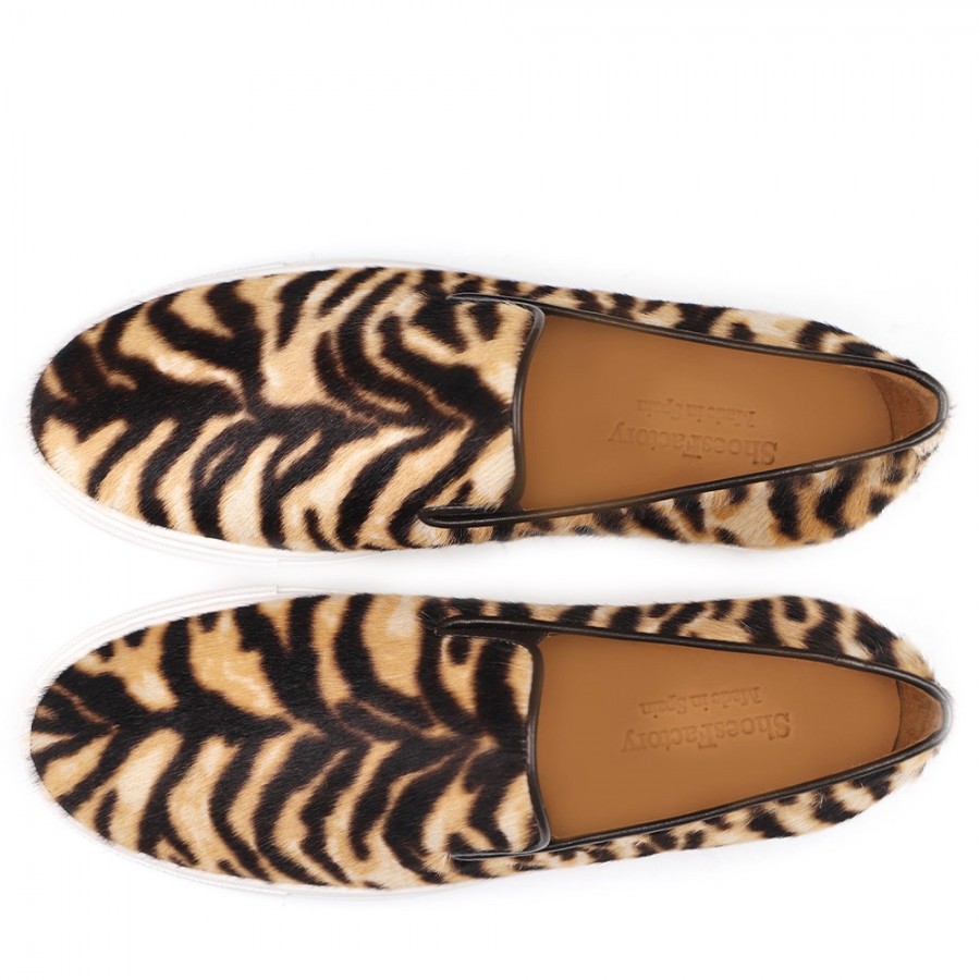 PONY TIGER, LEATHER TRIM, LEATHER LINING, RUBBER SOLE, DUST BAG, SHOE-HORN AND BOX, MADE IN SPAIN