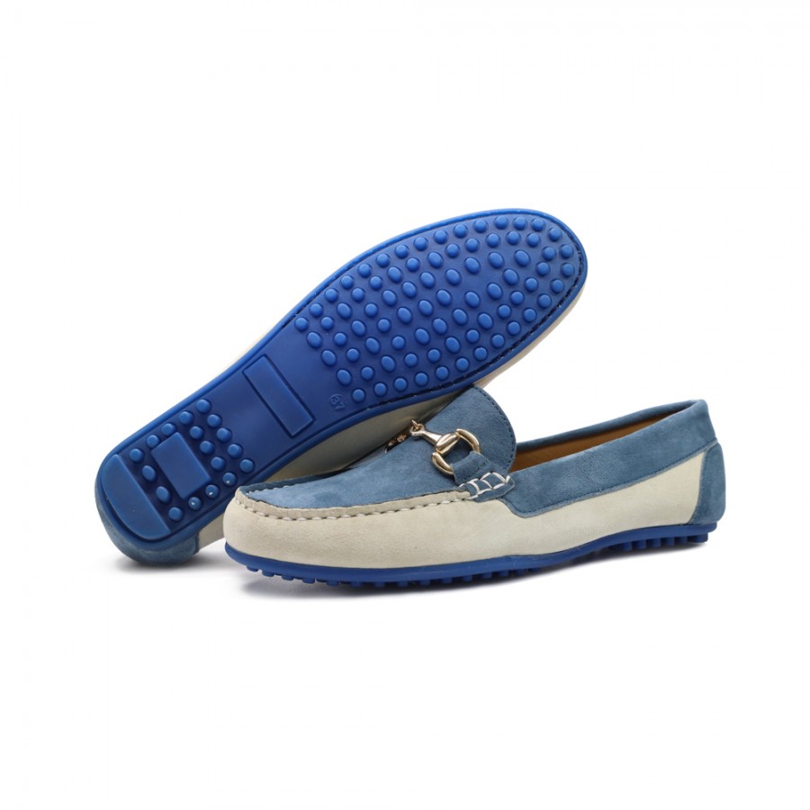 | JEANS/ICE SUEDE, BIT ORNAMENT, LEATHER LINING, RUBBER SOLE, DUST BAG, SHOE-HORN AND BOX, MADE IN SPAIN, HANDMADE TO ORDER IN 21 DAYS |