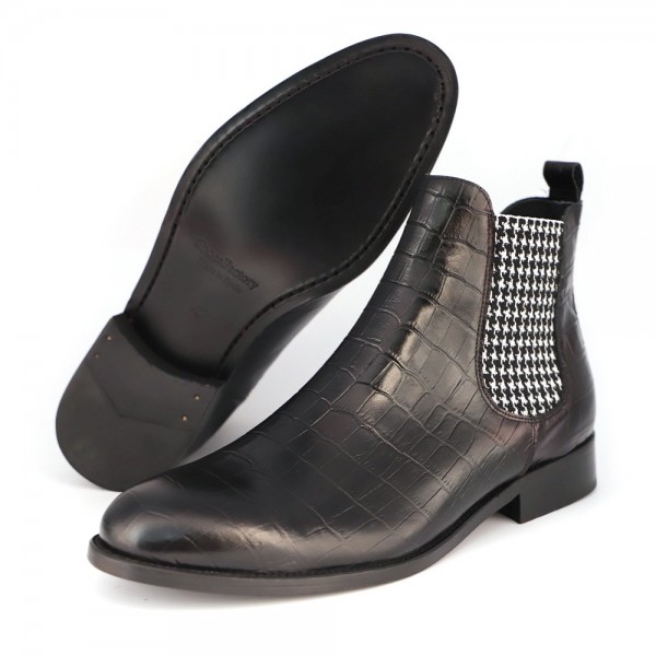 BLACK COCO HOUNDSTOOTH ELASTIC, LEATHER LINING, LEATHER SOLE, 16MM HEEL, DUST BAG, SHOE-HORN AND BOX, MADE IN SPAIN