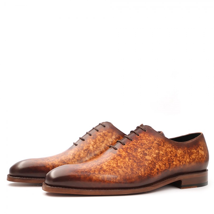 GREEN PATINA, BUCKLE ORNAMENT, LEATHER LINING, LEATHER SOLE, 16MM HEEL, DUST BAG, SHOE-HORN AND BOX, MADE IN SPAIN